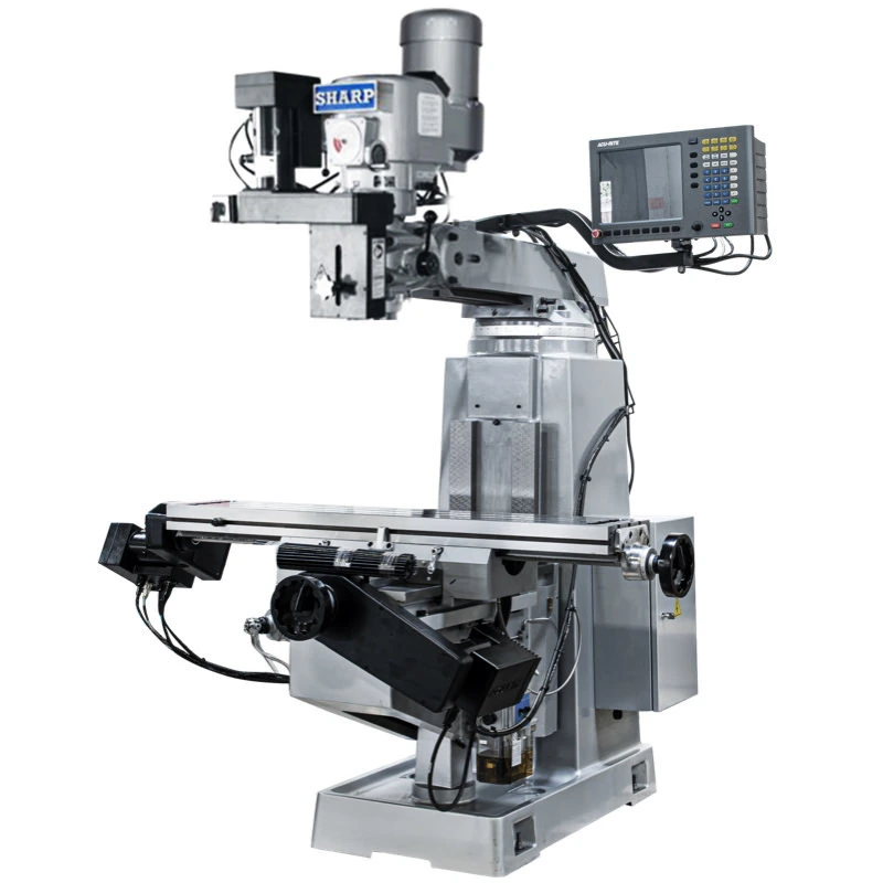 This is a simple, easy to use 3 axes CNC control vertical mill. Ball screws and servo drives are installed for longitudinal and cross travel. 3 axes Digital Readout System are installed on the table, saddle and quill. The Millpwr G2 CNC has G code and conversational type programming . The CNC system is built on the top quality SHARP vertical mills frame.