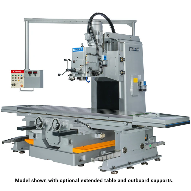 Bed type vertical milling machines are ideal for milling large work piece or heavy cutting on hard metals. The quill is fixed so it can withstand strong lateral forces. For this model, the entire vertical head moves up to 20” that enables deep drilling and boring operations. The large spindle with #50 taper can remove large amount of metals in one pass. Even though the geared vertical head is huge, it travels smoothly by cranking the eye level tri-lever handle.