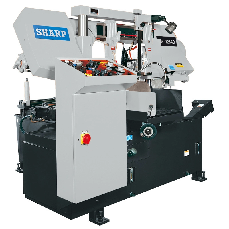 This heavy duty double column automatic band saw is a high production machine with hydraulic double column saw frame and gear box to exert lateral cutting force. The double column design keeps the blade parallel to the material at all times creating consistent force throughout the entire cutting cycle.