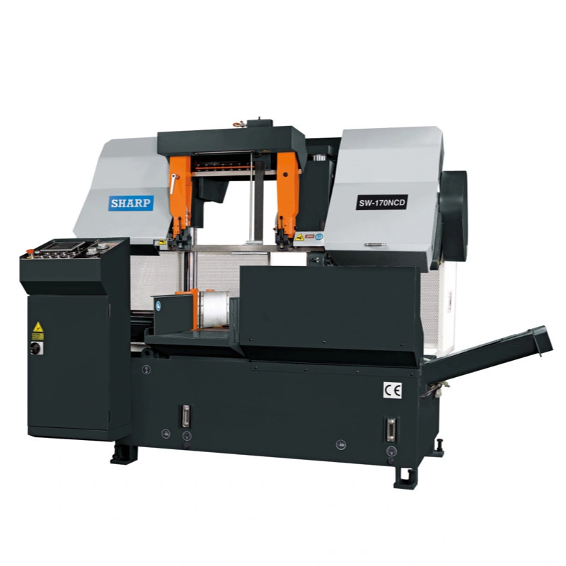 This NC operated hydraulic heavy duty double column automatic band saw that utilize the Smart NC-100 system to store most parameters and functions and programmed to perform most cutting jobs. The double column design ensure smooth saw frame movement and consistent stable cutting force to achieve high cutting efficiency and extended blade life.