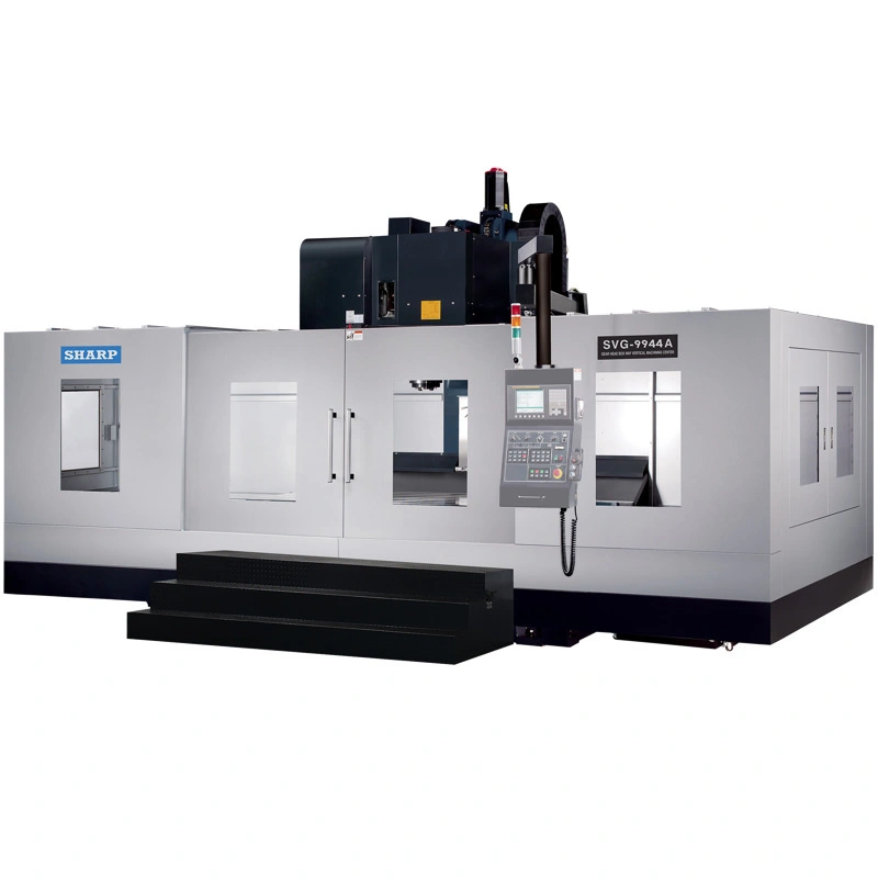 The Sharp SVG series was engineered from the ground up for hard metal machining. This is a extremely rigid “C” frame design using hardened and ground box ways. All structural components are made of Meehanite casting with internal ribs running throughout each section. Precision hand scraping of each section provides near perfect alignment assuring long term accuracy. The gearhead spindle is equipped with 35 HP motor, 6,000 rpm, CAT 50 spindle.