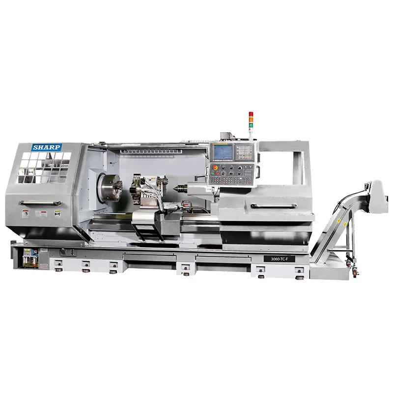 This is a user friendly CNC lathe with full CNC functions and manual operation functions. It has programmable spindle speed, and 4- way tool post positioning. The Electronic handwheel (MPG) can be used for manual operation.