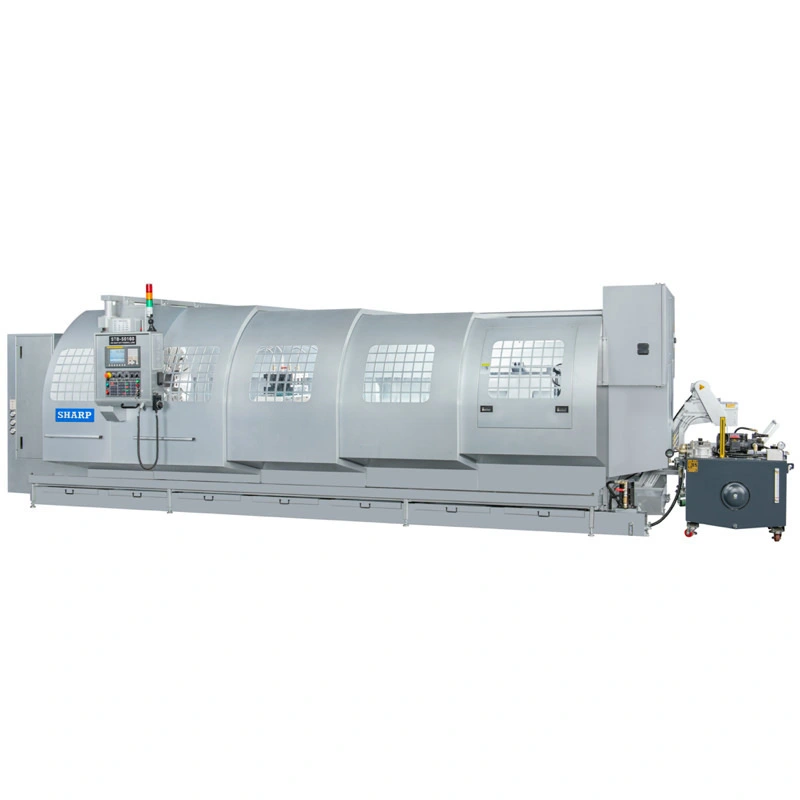 The big bore spindle lathe offers spindle bores of 6”, 9”, 10″, 12”, and 15” diameter for different sizes of materials. The center distance range from 60 – 236″. The machine bed is 32” wide. Double chucks are available for holding extra long and large pipes.