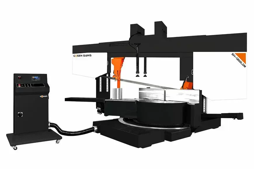 1300mm versatile horizontal double miter-cutting band saw is notable for its large capacity. This bandsaw machine enables miter cutting both forward and backward up to 60°. It features a 10° blade cant, specifically designed to cut structural steel such as H-beams, I-beams, channels, and profiles, ensuring optimal cutting performance under various conditions.