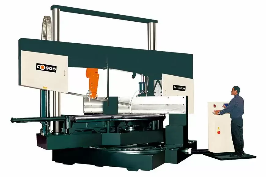 1500mm Semi-Automatic Horizontal Dual Column Dual Mitering Band Saw Machine exceed many of the standard requirements that operators look for in a band saw machine. With its rigid construction and superior features, Cosen's SH-1500DM fits into that category. This heavy duty band saw offers precision, efficiency in operation, lower cost per cut, and durability in a demanding production environment.